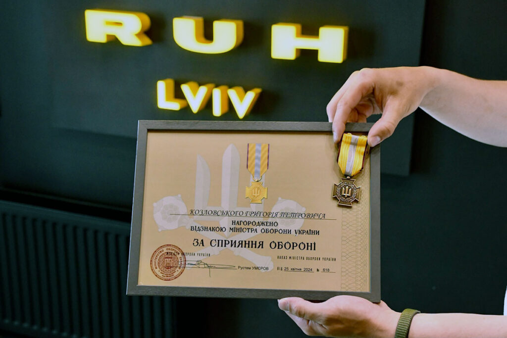 Григорій Козловський відзначив, що отримати таку нагороду від Міністра оборони України Рустема Умерова дуже приємно та несподіваною. Та подякував усім працівникам «Руху» та Emily Resort, які разом з ним роблять все, щоб допомогти українським захисникам та наблизити нашу Перемогу.